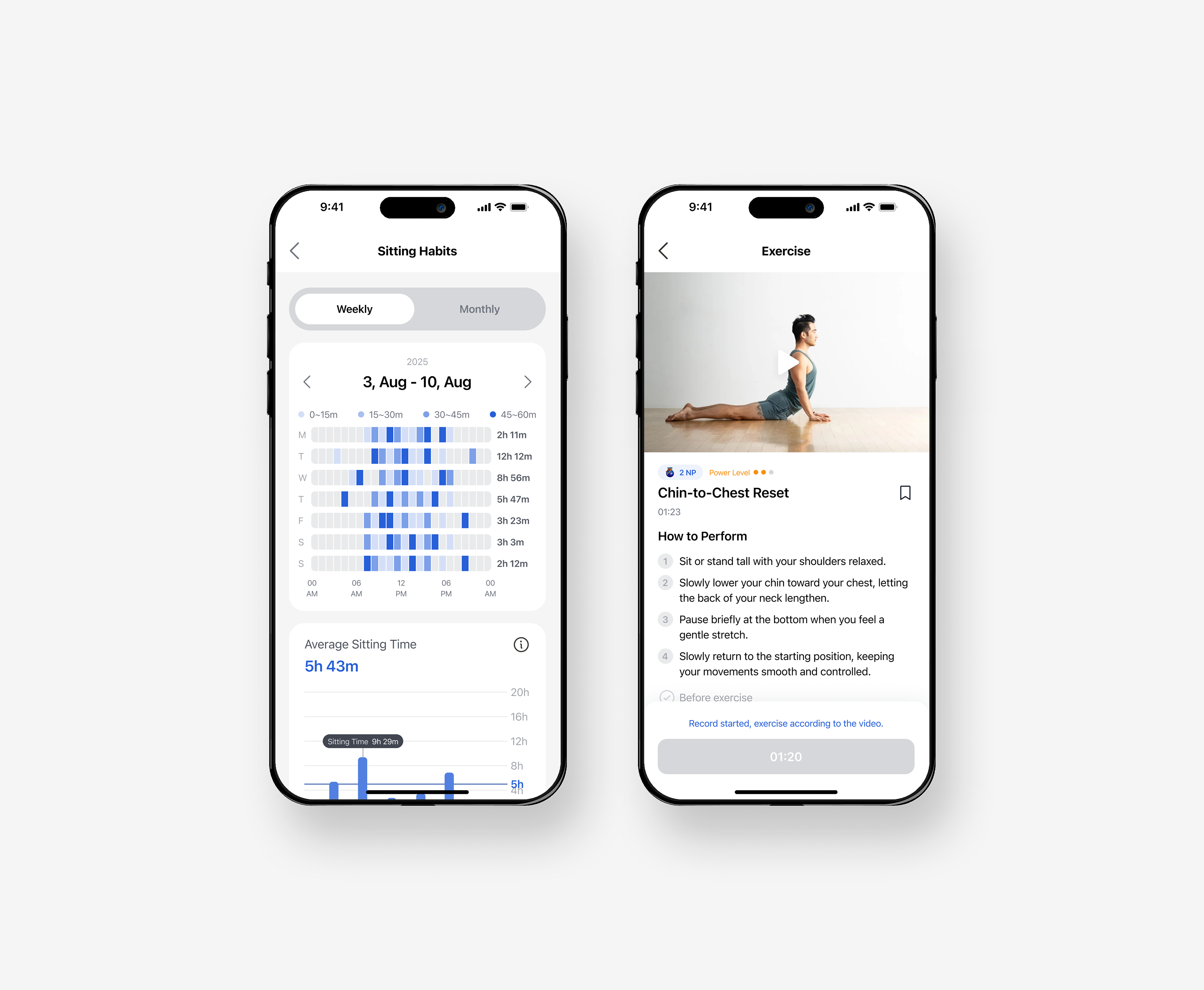 Notre application d’analyse offre un suivi en temps réel et un coaching personnalisé, propulsés par l’intelligence artificielle, afin d’optimiser vos habitudes d’assise, d’aligner votre colonne vertébrale et de renforcer votre confiance.