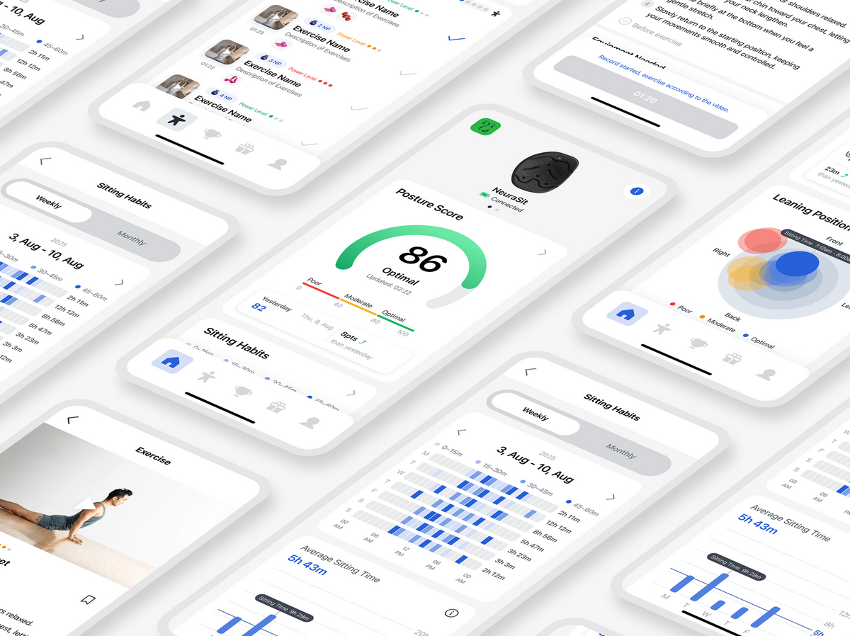 Monitor your posture in real-time and receive prolonged sitting feedback with the Neurabody app.